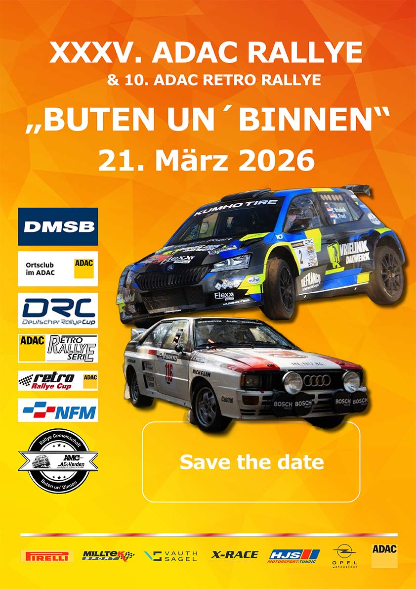 Und wieder ist ein Jahr vergangen, und wieder ruft die „grüne Hölle“ zur XXXV. ADAC Rallye „Buten un`Binnen“ & 10. ADAC Retro Rallye „Buten un`Binnen“ am 21. März 2026 Das Mehr…